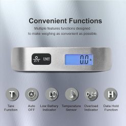 - [Multifunction digital scale] Backlight LCD display is easy to read the digital luggage scale in dim light and bright light. Rubberized handle is comfortable to grip. The data lock function gives you more time to read the results.